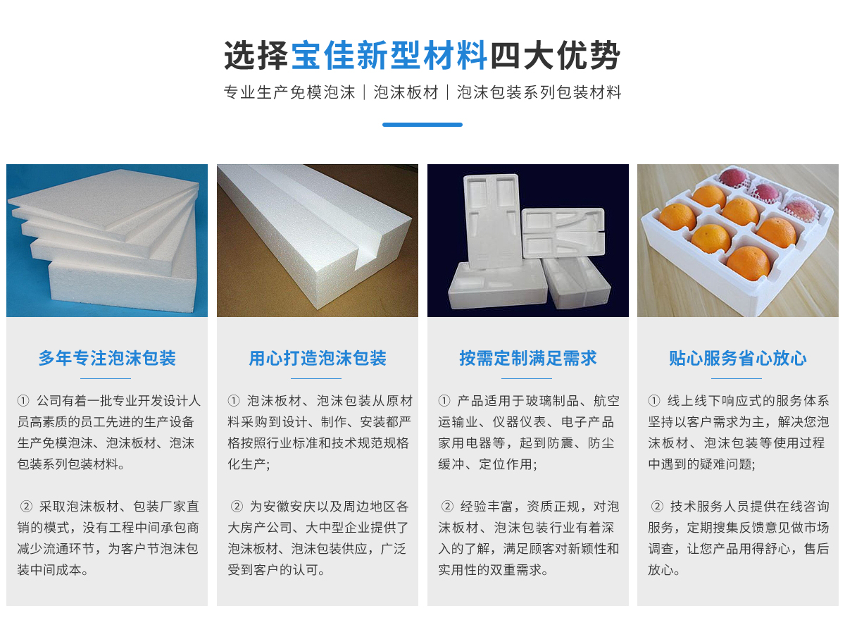 - 懷寧縣寶佳新型材料有限公司是泡沫包裝專業(yè)生產(chǎn)商,公司致力于產(chǎn)品內(nèi)包裝的設(shè)計和生產(chǎn)為客戶解決產(chǎn)品的防震緩沖、定位和保溫等包裝問題本公司有著一批開發(fā)設(shè)計人員高素質(zhì)的...